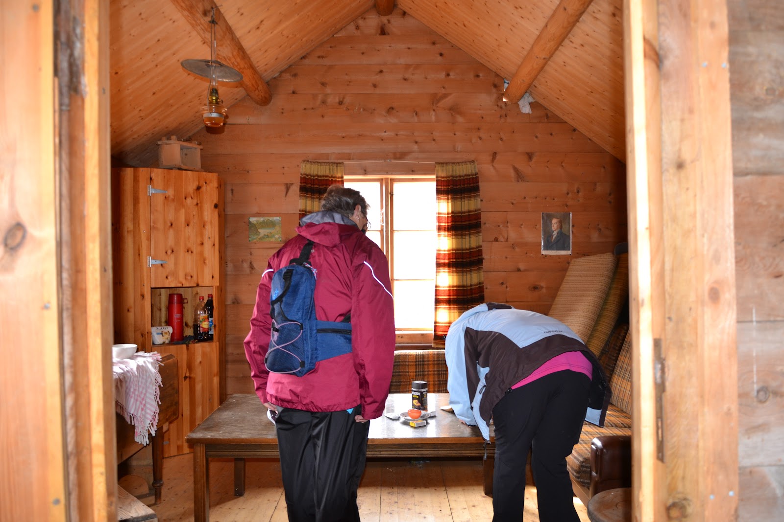 Denne turen gjekk frå fotballbana i Skjolden og opp til selet hans Kristen Sverre Flohaug, me hadde med oss kjentmann og var inne og skreiv oss i hytteboka,